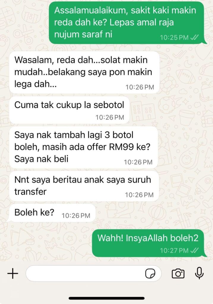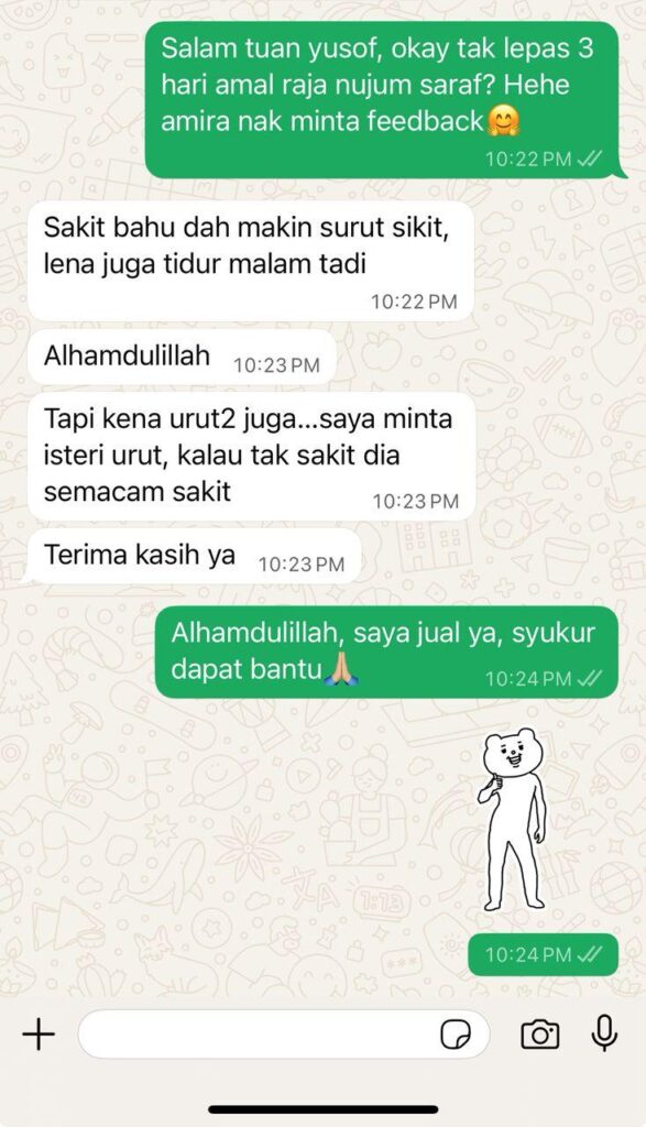 Lepas amal Raja Nujum Saraf ni, dah boleh buat aktiviti harian seperti biasa...